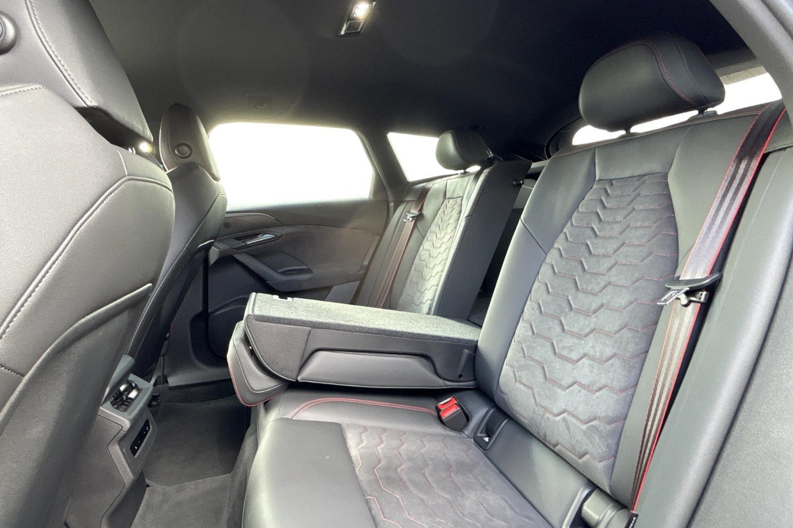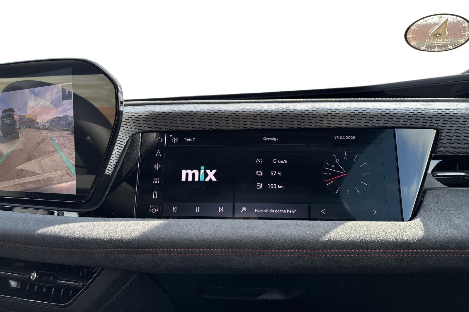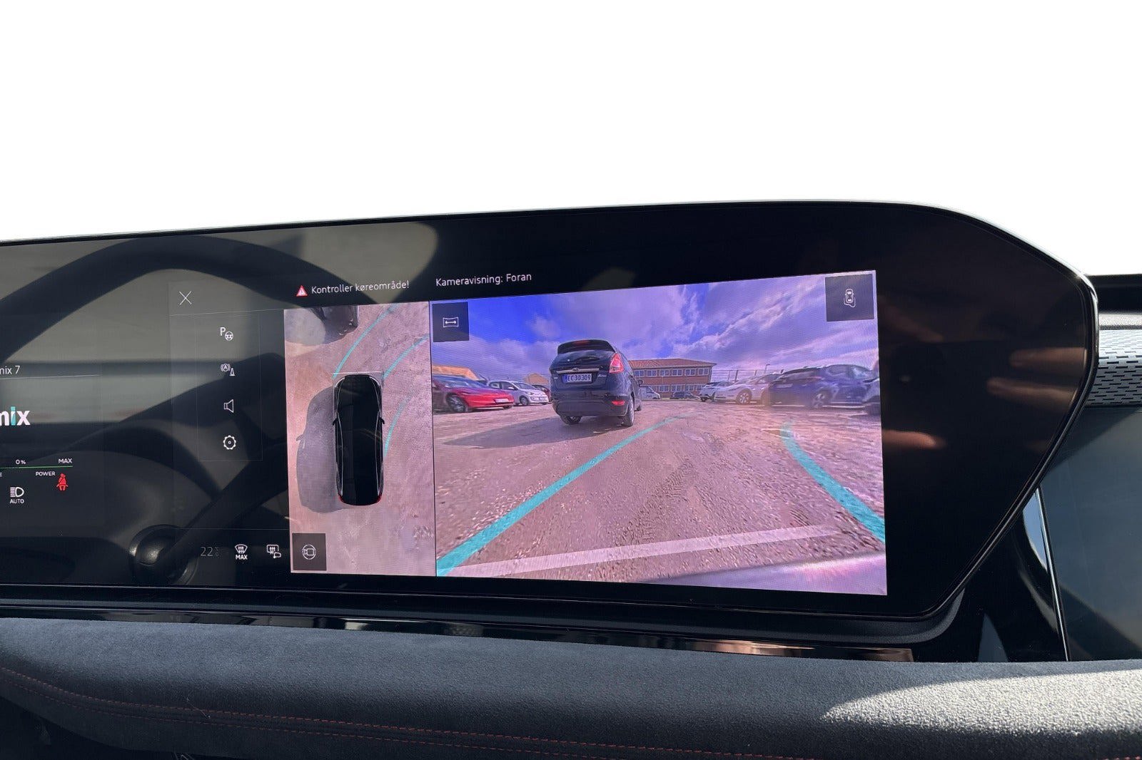 * Udvalgs standardudstyr * Adaptiv luftundervogn * Digitale OLED-baglygter * S line * S line interiør med sportsæder i sort stof-kunstlæder- kombination * Elektrisk ratindstilling * Elektrisk lukkehjælp til døre * Garageportsåbner * Adaptiv kørselsassistent plus herunder adaptiv fartpilot * Sportsforsæder med elektrisk indstilling * Memoryfunktion for førersædet og sidespejlene * Matrix LED-forlygter * Digitale lyssignaturer * Vognbaneafvigelsesadvarsel inklusiv nødsituationsassistent * Proaktiv passagerbeskyttelse til front side og bag * MMI-passagerdisplay * Sideairbags bagi * Trådløs opladning til smartphone * E-tron sportslyd * Holdeassistent * Omgivelseskameraer * Parkeringsassistent plus * Parkeringssensor for * Parkeringssensor bag * Audi Smartphone Interface med Apple CarPlay og Android Auto * Stofindtræk * Komfortnøgle * Digitalnøgle * 3 zoners klimaanlæg * Elektrisk ladeklap * AC ladetilslutning på begge sider af bil * Akustiske sideruder foran * Interiør med sportssæder i sort stof * Vognbaneafvigelsesadvarsel * Frunk * Træthedsregistrering * Bluetooth * Isofix * Armlæn * Kopholder