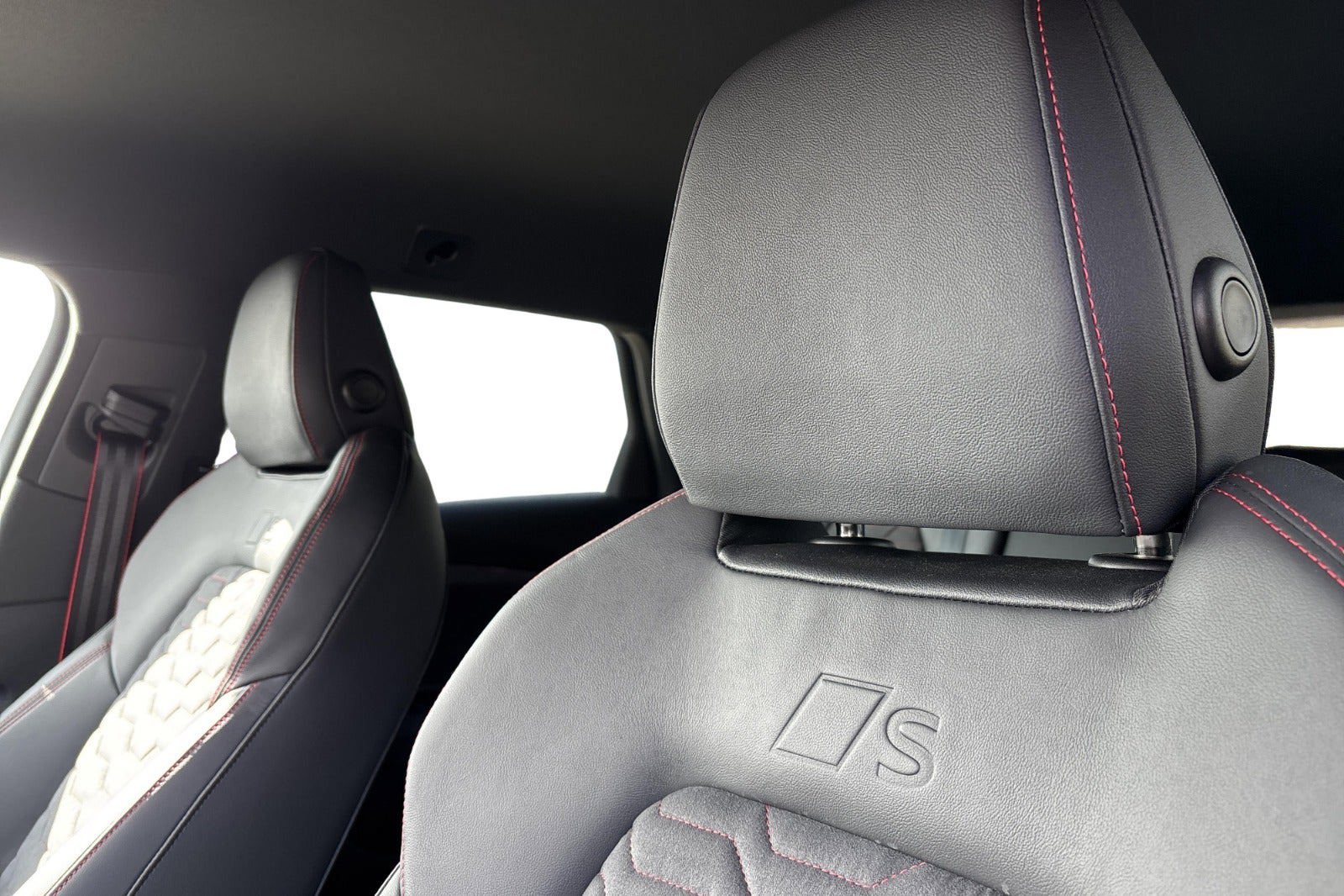 * Tilvalgt fabriksmonteret ekstraudstyr * Sort optikpakke *Fælge, Audi Sport, 5-eget dynamikdesign, sort metallak *S-interiør med sportssæder, mikrofiber Dinamica/læder m. røde syninger *Vinterklimareguleringspakke *Røde bremsekaliber