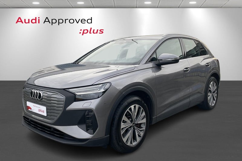 Udvalgt standardudstyr i Q4 e-tron: * Dansk bil med Varmepumpe * LED forlygter og baglygter * Undvigeassistent og drejeassistent * Komfortparkeringsklimafunktion * Klimaanlæg automatisk * Vognbaneafvigelsesadvarsel * Sædevarme foran * 19" alufælge 5-eget design * Audi pre sense front * Audi sound system * Børnesikring, elektrisk betjent * Børnesædefastgørelse i-Size i passagersiden og i-Size og * Top Tether på de yderste bagsædepladser * Dekorindlæg i sort eksklusiv lak * Digital radiomodtagelse * Digitalt cockpit 10,25” * Multifunktionssportslæderrat flad top og bund og skiftekontakter * Forsæder med højdeindstilling * Højglanspakke blanke rudelister * Komfortmidterarmlæn foran * Mode-3-ladekabel * Sidespejle med elektrisk indstilling og elopvarmning * Sidespejlhuse i bilens farve * Splitbagsæde 40:60 * Tagræling blank
