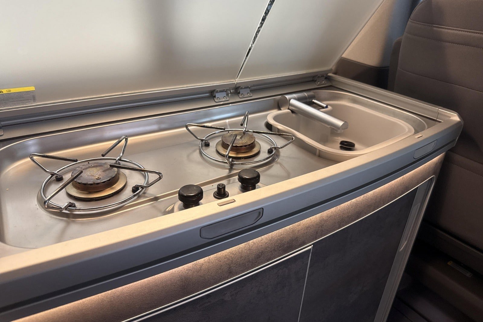 - 4 sovepladser, 2 forover og 2 forneden - Fuldt køkken med 42ltr. kompressor køleskab, 2 gasblus, 2 køkkenskabe med bestikskuffe. - Garderodeskab med bøjlestang og spejl. - 2 campingstole og 1 campingbord. - Begge forstole kan vendes mod opholdsrum - 30 ltr. ferskvandstank og 30 ltr. spildevandstank. - Stor åbning i fronten af teltdugen samt vindue med fluenet. - Termostatstyret luftfyr med fjernbetjening til opvarmning ved ophold i camper - Dobbelt laminerede ruder i bo delen, mindsker kuldefald, dug og kondens på ruder. - Automatisk åbning og lukning af hævetaget, blot ved tryk på en knap. - Insekt net til skyderuden over køkkenbordet. - Dæmpbar LED lysstribe ved køkkenbordskant, LED lys indvendigt i køkken- og garderobeskabe. - Dæmpbar LED lamper i bagklap og i taget når det er slået op. - Hjælpeluk på skydedør og bagklap. - Fartpilot - LED for og baglygter - Tåge forlygter - med drejelys - 3 zone automatisk klimaanlæg - Sædevarme i forstolene - Multifunktions læderrat - DAB+ digital radiomodtagelse, APP-Connect (Apple CarPlay & Android Auto), WeConnect og e-call. -Sidevindsassistent - Front assist - Træthedsregistrering - Lakerede spejle og dørhåndtag i vognfarve, samt 3 kromlister i kølergrill.
