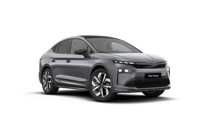 Fabriksny Skoda Enyaq Sportline Coupé - Klar til levering Sportline Farve: Graphite Grey metallak Indtræk: Sportline (sort alkantara stof med sort dellæder), sportrat, sort himmel og dekorelementer i carbon design)